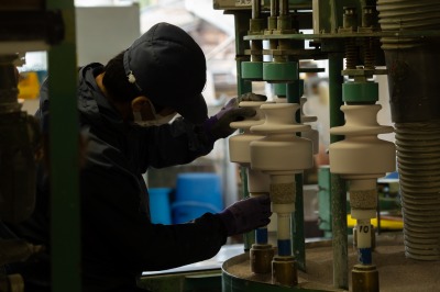 - 碍子工場は67名の従業員がおり、釉薬の現場は20代から60代の従業員が作業しています。